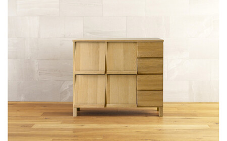 【サイズ】 幅105.5cm×奥行39.5cm×高さ95.5cm(木脚:10.8cm) 【扉内寸】 ラック扉内4箇所:幅35cm×奥行32.5cm×高さ31.5cm 【引き出し有効内寸】 上から1,2,3段目:幅23.5cm×奥行30.5cm×高さ15cm 上から4段目:幅23.5cm×奥行30.5cm×高さ14cm 【素材】 天板:突板、 側板:突板 扉:突板、 扉取手:無垢材、 引き出し前板:無垢材 【塗装】 ウレタン塗料 【天板耐荷重】 70kg 【重量】 30kg ※在庫がある場合8日~14日後のお届けです。 1便(9:00~14:00)・2便(12:00~18:00)をご指定いただけます。 (一部ご指定いただけない地域もございます) お届け日当日朝に宅配業者よりお電話でお届け時間のご連絡を致します。 ※一階から別のフロアへの移動や商品が階段や通路・エレベーター等に入らず吊り上げ作業が必要な場合等は別途料金が掛かる場合がございます。 あらかじめご了承くださいませ。 ※当店では複数店舗で在庫共有をしておりますので、タイミングによってはご注文いただいた商品が欠品となっている場合もございます。 ※在庫の確認などは高野木工までお気軽にお問い合わせくださいませ。 ※在庫状況によっては納品をお待ちいただく場合もございます。