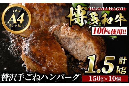 博多和牛100% 手ごねハンバーグ(150g×10個・計1.5kg) <離島配送不可>冷凍ハンバーグ 牛肉 黒毛和牛 国産 手作り 小分け【ksg0423】【久田精肉店】