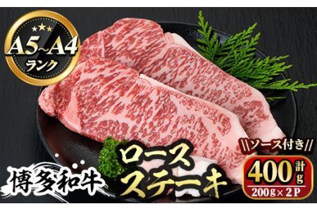 博多和牛A5~A4 ロースステーキ200g×2枚(合計400g)ソース付 牛肉 黒毛和牛 国産 霜降り 化粧箱 贈答 ギフト プレゼント<離島配送不可>【ksg0347】【マル五】