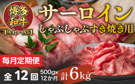 【毎月定期便】【A4~A5】博多和牛サーロインしゃぶしゃぶすき焼き用 500g 全12回 AO053