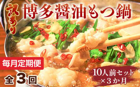 【毎月定期便】訳あり!博多醤油もつ鍋 10人前セット全3回 AO109