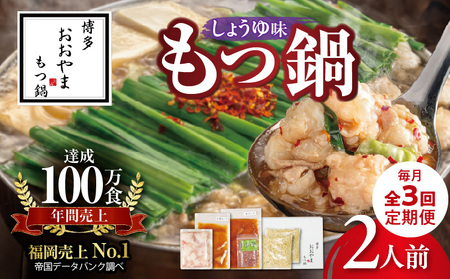 【定期便】博多もつ鍋おおやま もつ鍋しょうゆ味2人前 3回(毎月)コース _06T-014