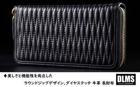 ダイヤステッチ ラウンドジップ ロングウォレット 本革長財布