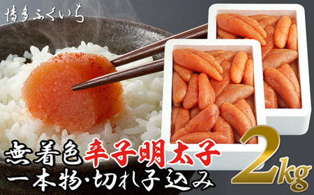 AH059.大容量「無着色辛子明太子」1kg×2個(一本物・切れ子込み)