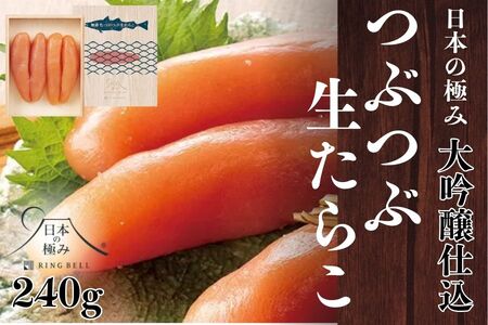 大吟醸仕込たらこ240g 【賞味期限】 冷蔵で12日 【アレルギー】 特定原材料8品目および特定原材料に準ずる20品目は使用していません