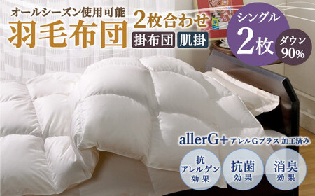 羽毛布団 2枚合わせオールシーズン使用可能 シングル ダウン90% 掛布団:0.8kg 肌掛:0.3kg 計 1.1kg