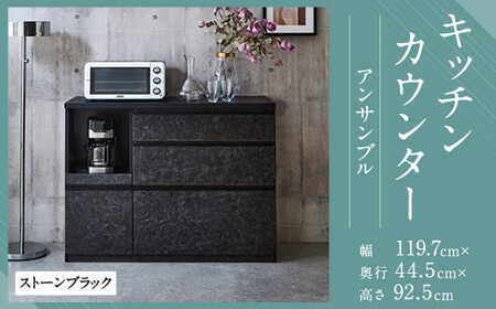 【開梱設置】 キッチンカウンター レンジ台 アンサンブル 幅119.7 ストーンブラック 食器棚 家具