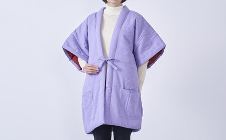 綿入れ やっこ半纏 (半袖) ささ舟柄 ラベンダー