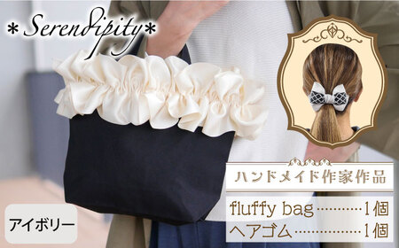 【ハンドメイド作家作品】fluffy bag ( アイボリー )& ヘアゴム 1個 セット【*serendipity*】 [ABAS010]