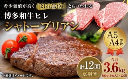 【定期便12回】 博多和牛 ヒレ シャトーブリアン 300g (2枚入り) 黒毛和牛