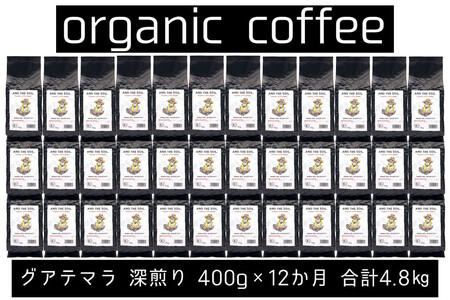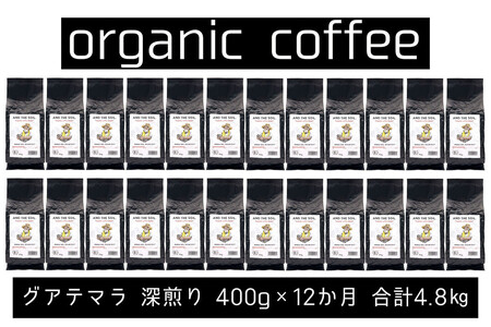 【定期便】AND THE SOIL.オリジナル焙煎オーガニックコーヒー豆GUA深煎り4800g 400g×12 か月【福岡高砂】