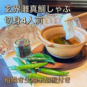 【創業40年の和食店が提供する】天然真鯛の鯛しゃぶ4人前と唐辛子栽培から手掛けるこだわり抜いた柚子胡椒のセット冷凍[F4563]