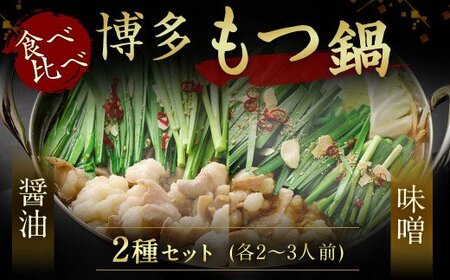 【一週間以内に発送】食べ比べ 博多 もつ鍋 2種 醤油 味噌 (2~3人前×2セット)【伊豆丸商店】_HA1654