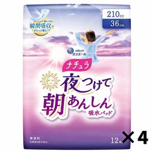 ナチュラ 夜つけて朝あんしん 吸水パッド 36cm 210cc 48枚(12枚×4パック)