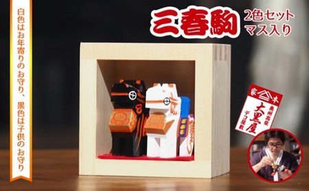 【ふるさと納税】三春駒 セット 一合マス入り 白黒 伝統工芸品 張り子 だるま ミニチュア 手づくり 縁起物 魔除け お守り おしゃれ 置物 インテリア おもちゃ 人形 民芸品