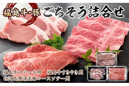 総量1400g 福島牛ステーキ用150g×3枚 福島牛すきやき用500g 白河高原清流豚ロースソテー用150g×3枚