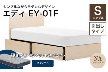【ベッドフレーム】 エディEY-01F(引き出し付き)シングル1台 【マットレス】 ツインサポートマットレス ミディアムソフト(TW-100)/ミディアム(TW-150)シングル1枚 ■当商品 ●カラー:ナチュラル(NA) ●硬さ:ミディアム