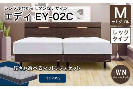 【ベッドフレーム】 エディEY-02C(レッグタイプ)セミダブル1台 【マットレス】 ツインサポートマットレス ミディアムソフト(TW-100)/ミディアム(TW-150)セミダブル1枚 ■当商品 ●カラー:ウォールナット(WN) ●硬さ:ミディアム