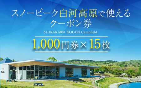 スノーピーク白河高原で使えるクーポン券 1,000円券×15枚 ※飲食・アクティビティ・キャンプフィールド利用限定