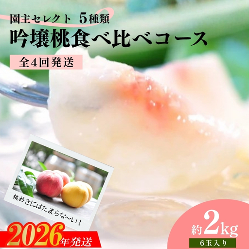 【1回目】もも(あかつきorまどか)約2kg/6~8玉 【2回目】もも (川中島白桃) 約2kg/6~8玉 【3回目】もも (白桃・黄桃セット) 約2kg/計6~8玉 【4回目】もも (さくら白桃) 約2kg/6~8玉