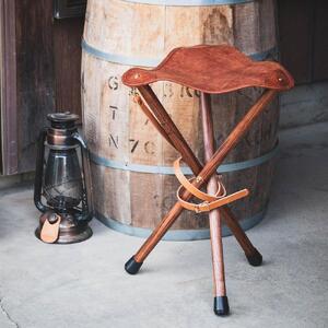 革と木のハンティングチェア:ハイタイプ【ブラウン】【本革 タンニンなめし イタリアンレザー】