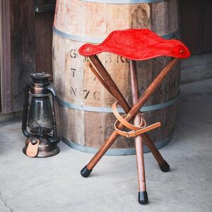 革と木のハンティングチェア:ハイタイプ【レッド】【本革 タンニンなめし イタリアンレザー】