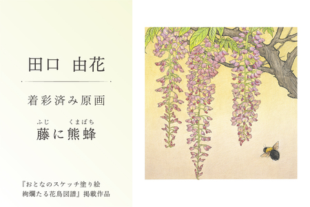 【ふるなび限定】田口由花 着彩済み原画「藤に熊蜂(ふじにくまばち)」(『おとなのスケッチ塗り絵 絢爛たる花鳥図譜』掲載作品)【0109-002-3】 FN-Limited-SP