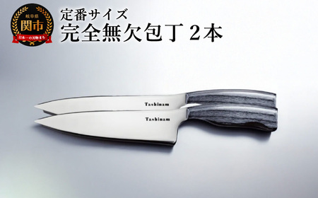 【容量】 完全無欠包丁 定番サイズ×1本、ペティ×1本 【サイズ】 完全無欠包丁 定番サイズ:全長340mm/刃渡り203mm/幅50mm 完全無欠包丁 ペティサイズ:全長230mm/刃渡り120mm/幅34mm 【製造地表記】 MADE IN JAPAN