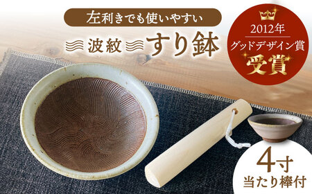 ■すり鉢 当たり棒付 波紋 4寸 サイズ:径13×高5.2cm ※すり鉢 【対応機器】 電子レンジ× / オーブン× / 食器洗浄機× 【お申し込み前に必ずお読みください】 お届けする返礼品には個体差が生じる場合があります。 下部記載の「個体差について」、「破損・欠陥について」を必ずご一読のうえ、お申し込みください。 【色について】 商品写真はできる限り実物の色に近づけるよう徹底しておりますが、 お使いのモニター設定、お部屋の照明等により実際の商品と色味が異なる場合がございます。