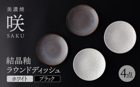【美濃焼】 ラウンドディッシュ 4枚セット ブラック × ホワイト 「咲」 【多治見トレーディング/隠れ窯】 食器 小皿 プレート[TEG020]
