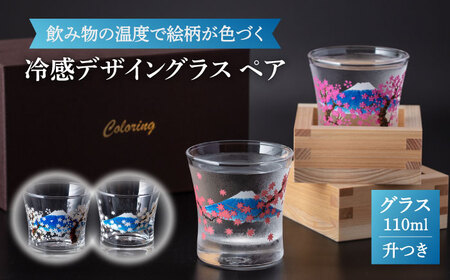 温度で色が変わる 冷感グラス 桜 ・ 紅葉 ペア 升付き 【昭和転写】食器 酒器 コップ [TCF004]