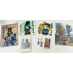 ・はんべえさんキーホルダー×1 ・松寿丸アクリルキーホルダー×1 (73×30mm) ・竹中半兵衛手ぬぐい×1 (350×900mm/梱包 200×110×20mm) ・竹中半兵衛ハンカチタオル×1 (220×220mm/梱包箱100×75×30mm) ・松寿丸ハンカチタオル×1 (220×220mm/梱包箱100×75×30mm) ・竹中半兵衛クリアファイル×1 (220×310mm) ・松寿丸クリアファイル×1 (220×310mm) ・松寿丸銀杏のかけらストラップ×1 (Φ15mm、H33mm) 5|当事業所のデザイナーが企画・デザインした著作権のある商品で、当該事業所でしか購入ができない商品である。 また、関ヶ原の戦いでは、主に毛利氏が南宮山(垂井町)に陣を構え、垂井も関ヶ原の戦いの舞台の一部となっている。 その関ヶ原の戦いにちなんだ武将を商品化したもの。 製造は町外で行っているが、当事業所でしかデザインできない商品である。