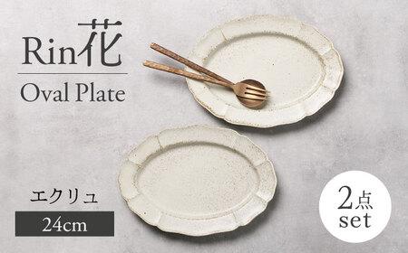 【美濃焼】Rin花 24cmオーバルプレート2点セット(エクリュ)【Felice-フェリーチェ-藤田陶器】[MBX068]