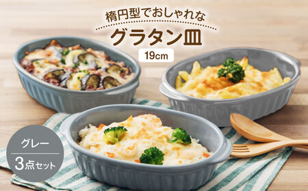 【美濃焼】楕円型でおしゃれなグラタン皿 19cm グレー 3点セット 【うつわやさん-カネ忠】 グラタン オーブン 耐熱[MBO057]
