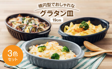 【美濃焼】楕円型でおしゃれなグラタン皿 19cm ネイビー グレー ブラウン 3色セット 【うつわやさん-カネ忠】 グラタン オーブン 耐熱[MBO059]