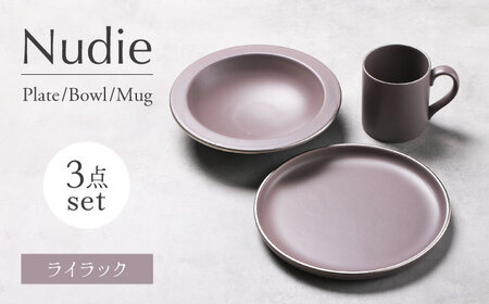 【美濃焼】Nudie プレート・ボウル・マグカップ3点セット(ライラック)【Felice-フェリーチェ-藤田陶器】[MBX099]
