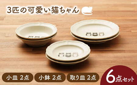 【美濃焼】3匹の可愛い猫ちゃん 小皿・小鉢・取り皿(各2点 合計6点ペアセット)【うつわやさんーカネ忠】[MBO062]