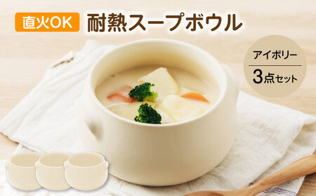 【美濃焼】直火OK 耐熱スープボウル アイボリー 3点セット【うつわやさん-カネ忠】[MBO067]