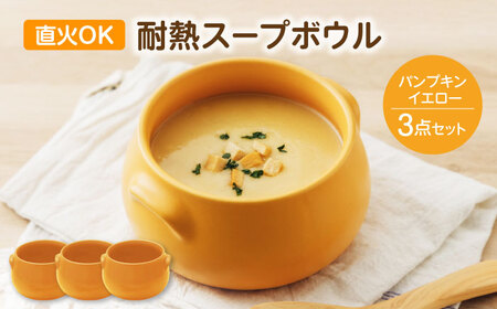 【美濃焼】直火OK 耐熱スープボウル パンプキンイエロー 3点セット【うつわやさん-カネ忠】[MBO068]