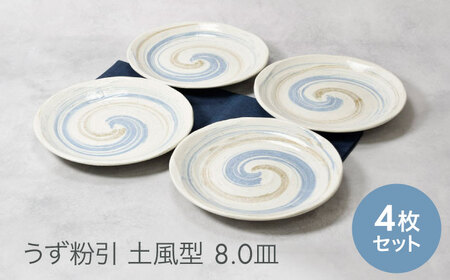 【美濃焼】うず粉引 土風型 8.0皿 4枚セット【カネ定製陶】[MEI088]