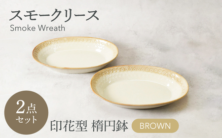 【美濃焼】スモークリース 印花型 楕円鉢 2点セット ブラウン【カネ定製陶】[MEI206-2]