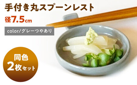 【美濃焼】 手付き丸スプーンレスト グレーつやあり 10cm 同色2枚 瑞浪市 / 窯元ロングアイランド 小皿 おしゃれ 食器 シンプル 箸置き レンジ対応 食洗機対応[AZCU088]