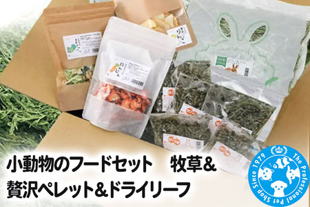 小動物のフードセット 牧草&贅沢ペレット&ドライリーフ