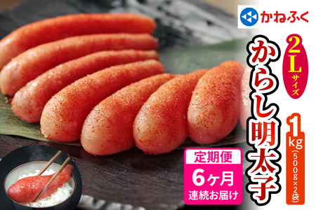 [定期便] 辛子明太子 1kg 2Lサイズ『6か月連続お届け』かねふく|めんたいパーク 辛子明太子 グルメ ギフト おかず 甘楽町 [0127]