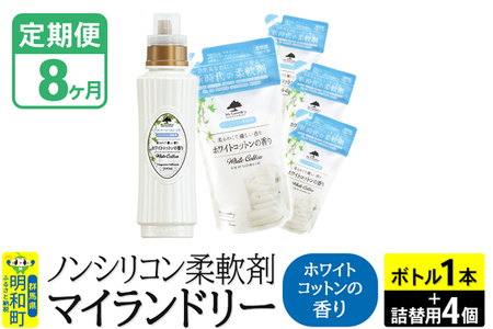 《定期便8ヶ月》ノンシリコン 柔軟剤 マイランドリー (ボトル1本+詰替用4個セット)【ホワイトコットンの香り】