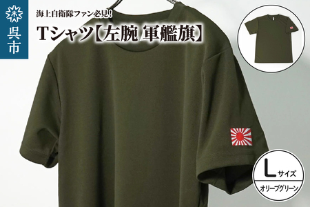 Tシャツ【左腕 軍艦旗】自衛隊グッズ ワンポイント 旭日旗 オリーブグリーン Lサイズ ku091-081-l-r