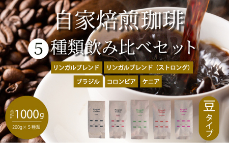 【 自家焙煎 コーヒー豆1kg(200g×5種)】 飲み比べセット 珈琲 ブレンド 194003