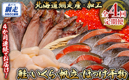 全4回 定期便 鮭・イクラ・ホタテ・ホッケ(4か月連続)ABB148