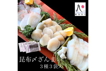 【漁師直送】北海道産 昆布締め3種 ホタテ貝柱 ゆでタコ 天然ひらめ 海鮮 冷凍 せたな町 ふるさと納税