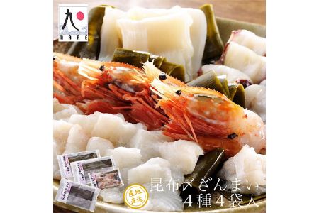 【漁師直送】北海道産 昆布締め4種 ホタテ貝柱 ゆでタコ 天然ひらめ ぼたん海老 海鮮 冷凍 せたな町 ふるさと納税